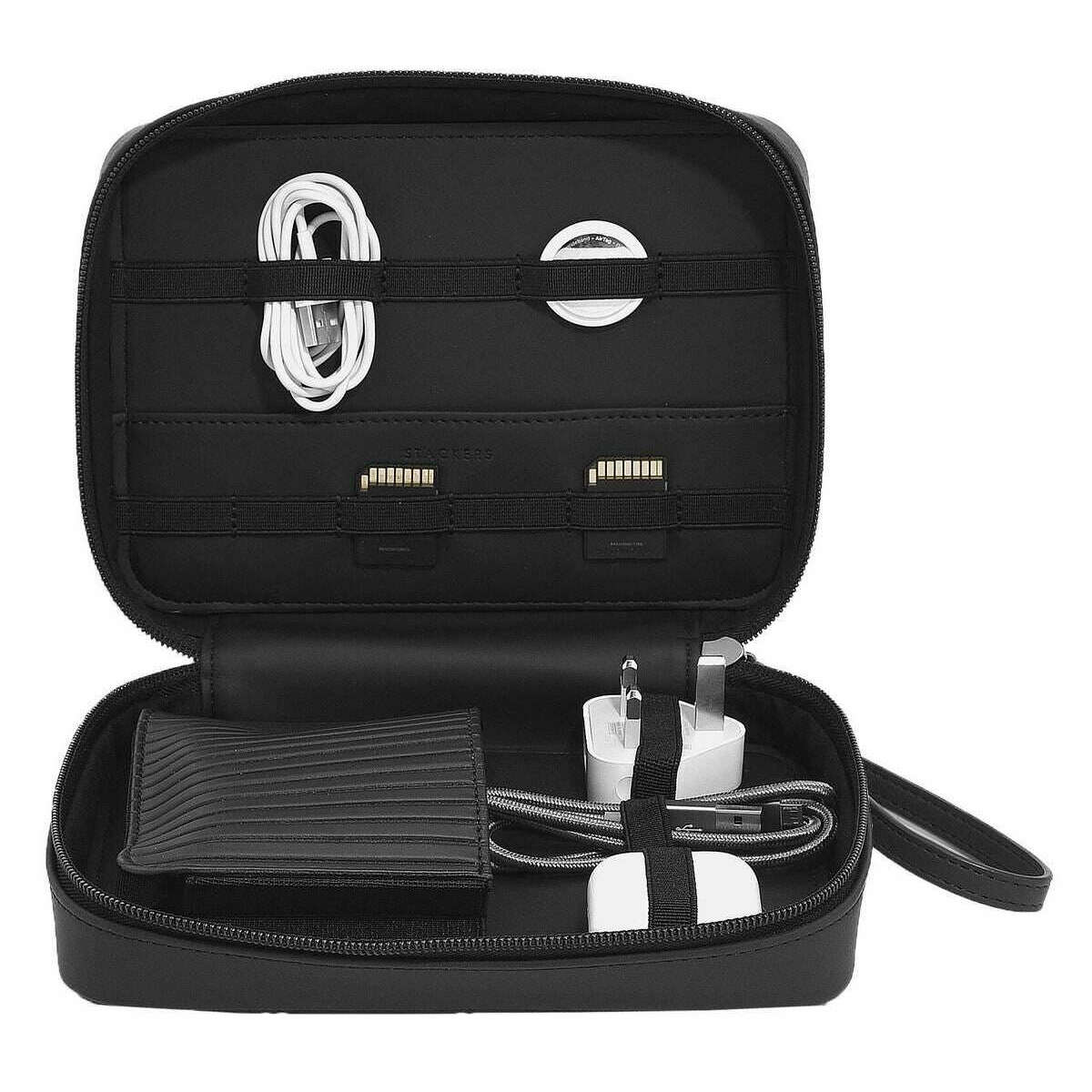 This women's fluted cable tidy has been made from faux leather, featured in a black colour and is from the brand Stackers. It measures 16cm(height) x 20.5cm(width) x 7cm(depth). All the home accessories come complete with stackers packaging. The Stackers Fluted Cable Tidy - Black is a must have when on the go! This black cable tidy is perfect for keeping all your belongings in order. Includes a zip closure for extra security.
