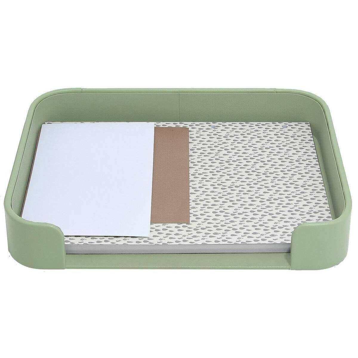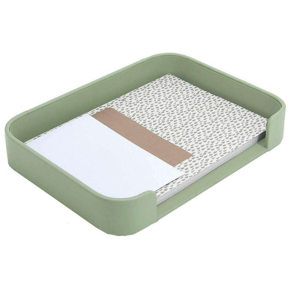 This women's letter tray has been made from faux leather, featured in a green colour and is from the brand Stackers. It measures 5cm(height) x 32.5cm(width) x 24.5cm(depth). All the desk accessories come complete with stackers packaging. The Stackers Letter Tray - Pistachio Green features a beautiful green design. This letter tray is perfect for storing paper or stationary and can be kept on a desk or in a drawer!