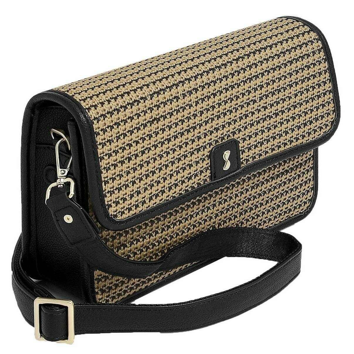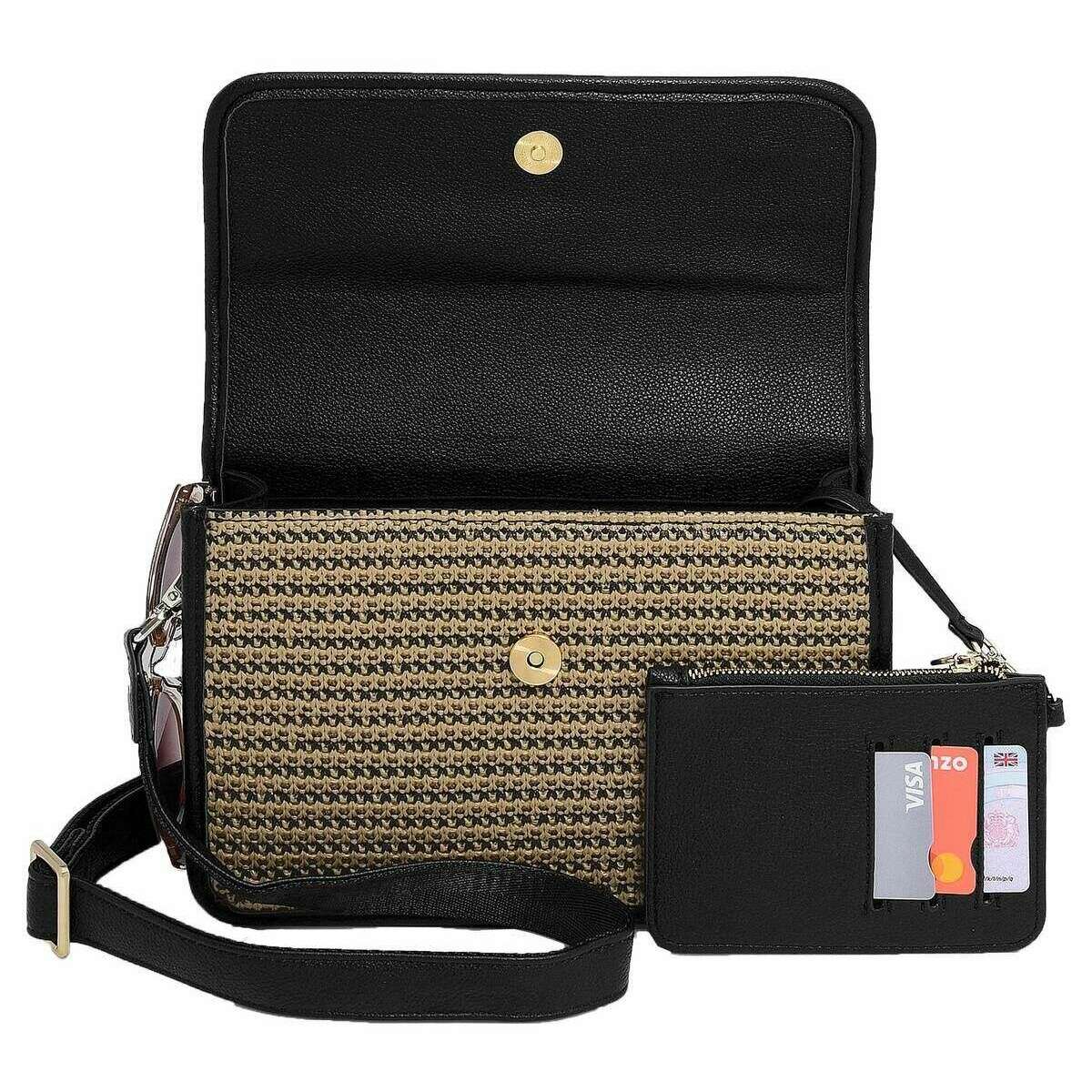 Introducing this women's raffia crossbody bag by Stackers, it is manufactured from raffia effect and faux leather in a black raffia colour. It measures 17cm(height) x 7.5cm(width) x 25cm(depth). All the bags come complete with stackers packaging. The Stackers Raffia Crossbody Bag - Black Raffia is a must have when on the go! This unique and trendy black raffia crossbody bag features multiple pockets, a stackers cosmetic mirror and a removable card purse. Perfect for everyday use with its removable and adjustable crossbody strap.