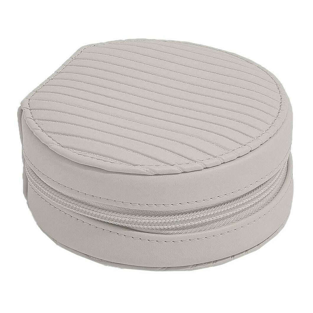 Using grey faux leather and velvet, this round travel jewellery box by Stackers is perfect for women and a must have. It measures 5.5cm(height) x 11.5cm(width) x 11.8cm(depth). All the jewellery boxes come complete with stackers packaging. The Stackers Round Travel Jewellery Box - Limestone Grey is perfect for on the go use. This grey travel jewellery box features removable ring and earring holders, as well as an additional pouch for bigger pieces of jewellery. Complete with a zip closure for added security.