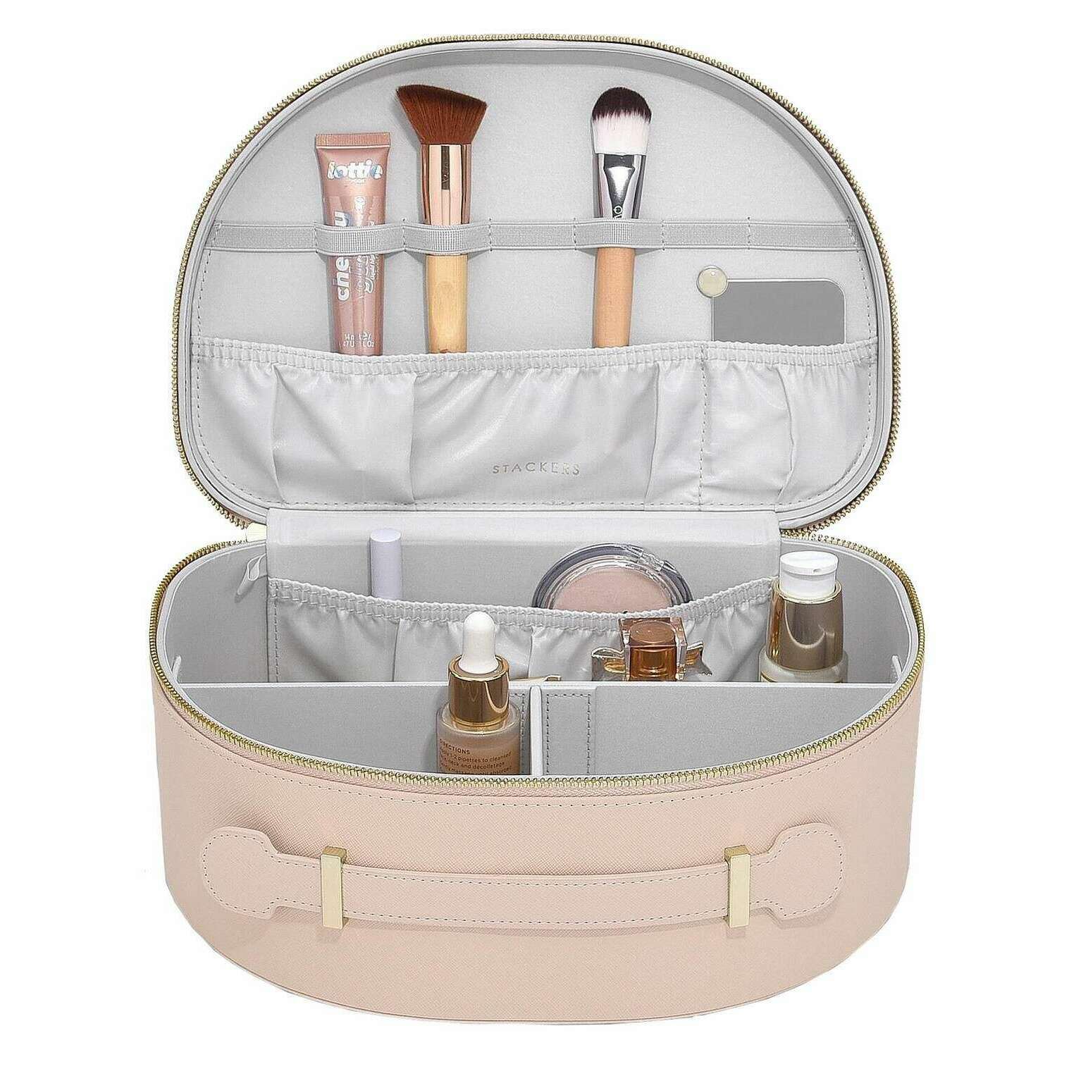 Perfect for women is this Stackers blush pink/gold vanity case, it is also made from faux leather. It measures 29cm(height) x 20cm(width) x 13cm(depth). All the accessory cases come complete with stackers packaging. The Stackers Vanity Case - Blush Pink/Gold is a must have when on the go! This pink vanity case is perfect for travelling with make-up and skin care. Includes a zip closure for extra security.
