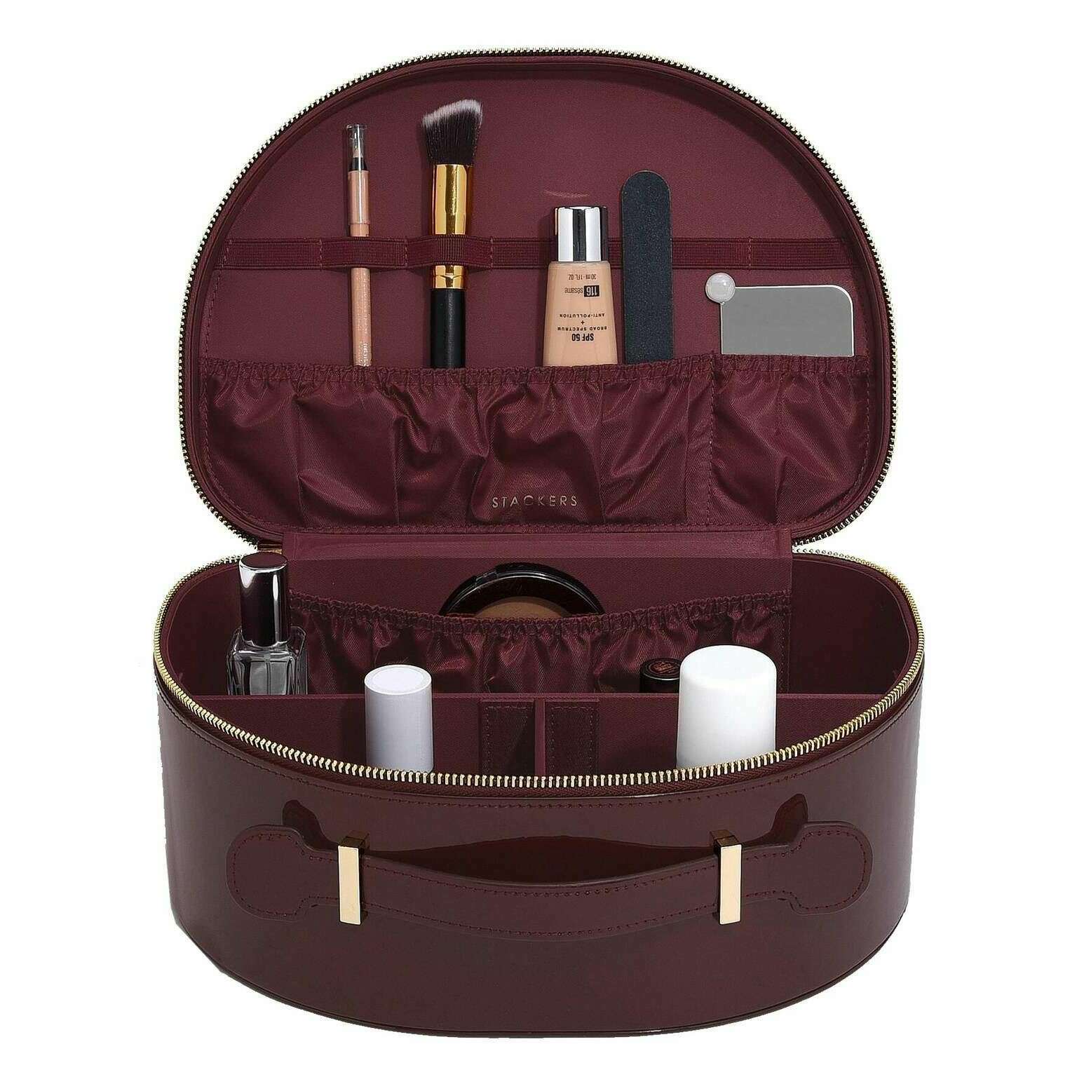 This well made women's vanity case from Stackers comes in a patent cherry burgundy colour and is manufactured from faux leather. It measures 29cm(height) x 20cm(width) x 13cm(depth). All the accessory cases come complete with stackers packaging. The Stackers Vanity Case - Patent Cherry Burgundy is a must have when on the go! This burgundy vanity case is perfect for travelling with make-up and skin care. Includes a zip closure for extra security.