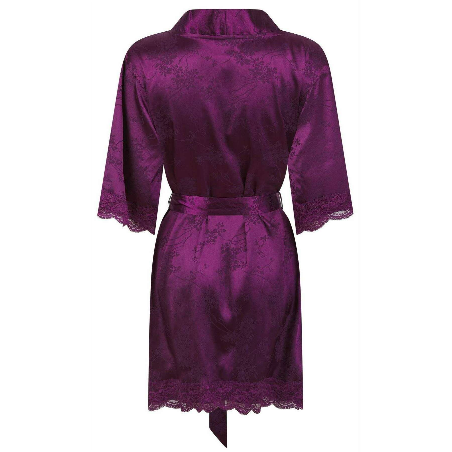This clara kimono robe for women is fashioned by the brand Ted Baker in a purple colour and is made from 97% polyester and 3% spandex. Also the dark purple dressing gown is designed in a plain pattern, All the dressing gowns come complete with ted baker packaging. The Ted Baker Clara Kimono Robe - Dark Purple luxurious and sophisticated, will become a great addition to any ladies loungewear collection. Featuring a silky look with a floral design all over, a 3/4 length sleeve, lace on the sleeves and bottom and a belt combines to create a chic appeal. The soft and breathable fabric keeps you warm whilst also cool when lounging in your home. Finished with a Ted Baker metal embellishment tag.