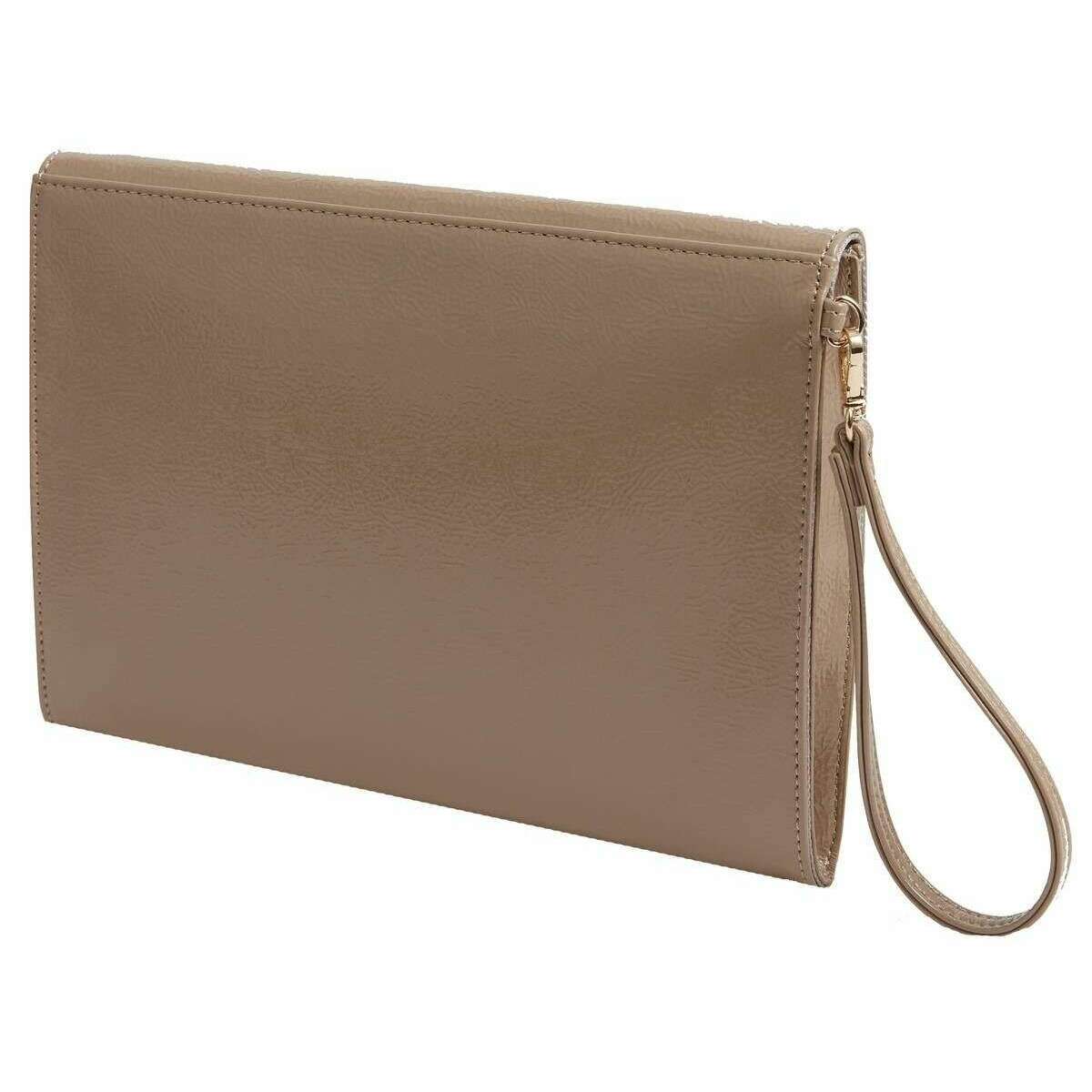 Manufactured from 100% polyurethane is this stone beige women's crinkie crinkle icon pouch by the designer Ted Baker. It measures 19cm(height) x 26cm(width) x 2cm(depth). All the bags come complete with ted baker packaging. The Ted Baker Crinkie Crinkle Icon Pouch - Stone Beige is the perfect companion for bottomless brunches or a night out. Its small, compact form offers plenty of storage for your essentials while still giving you plenty of timeless style. The wrist strap allows you to secure it or can be carried as a clutch. Its magnetic clasp closure ensures your items are safe inside while maintaining a clean and minimal aesthetic.
