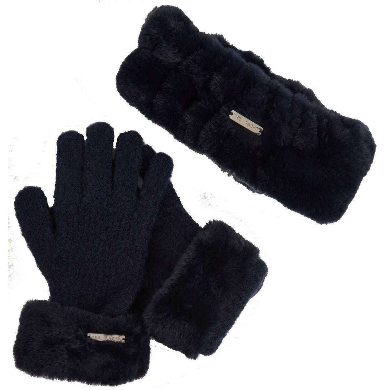 Ted Baker Furinni Faux Fur Headband and Gloves Set - Navy