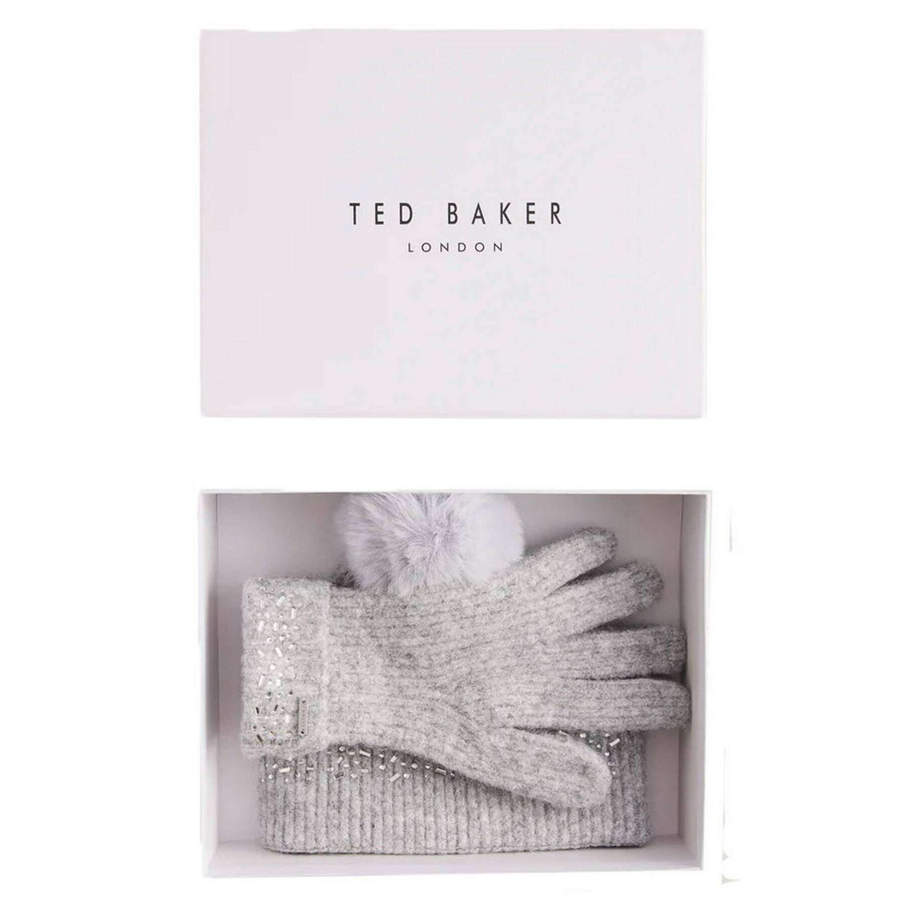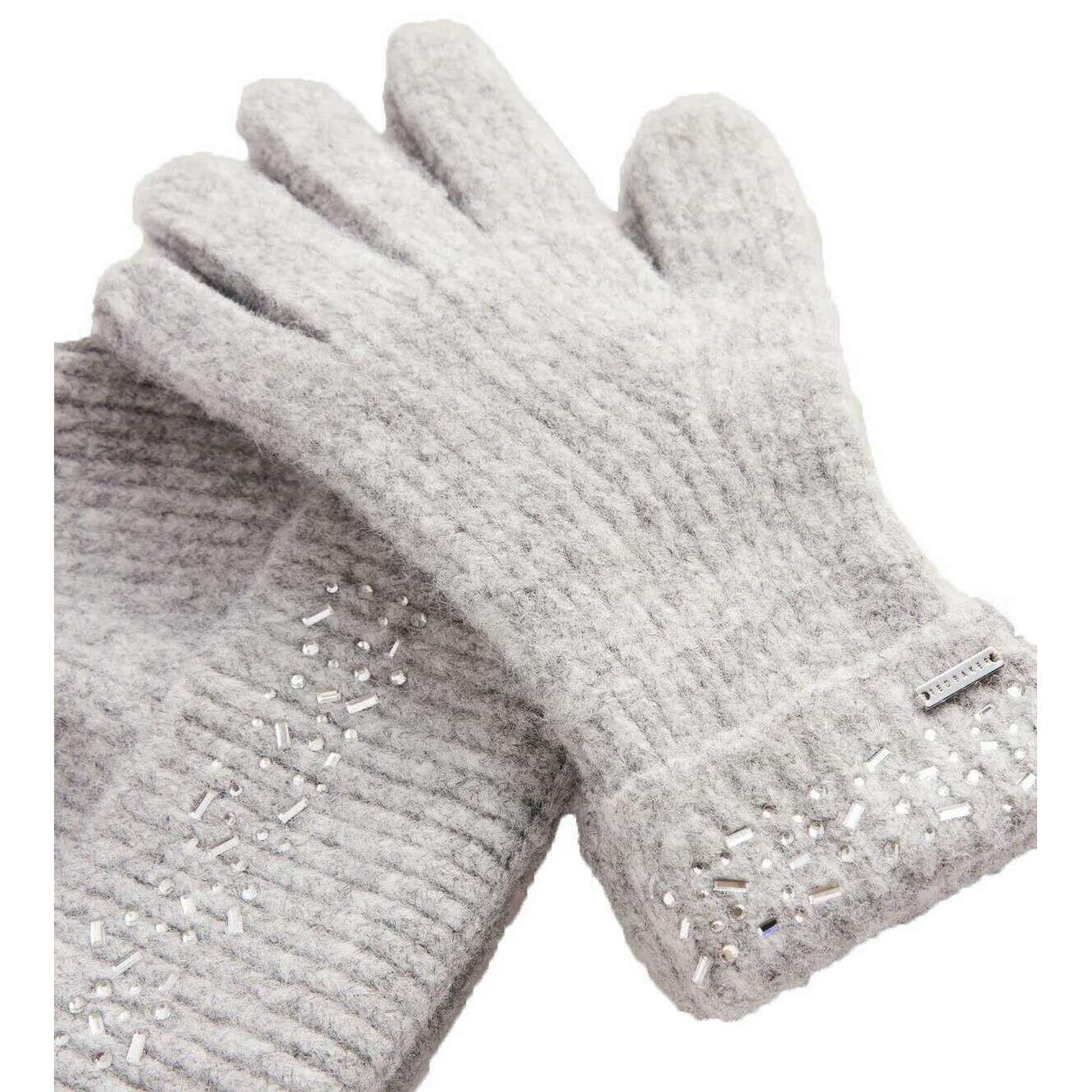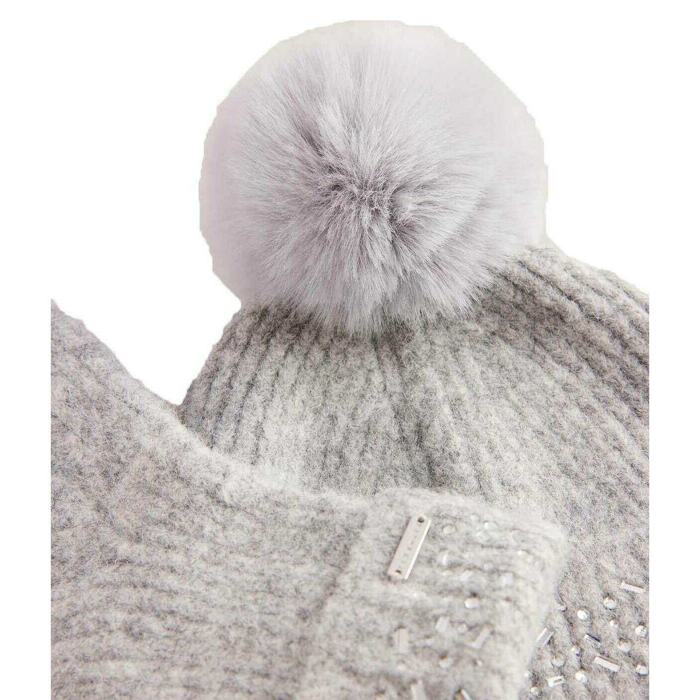 Ted Baker Keriis Rhinestone Knitted Hat and Gloves Set - Grey