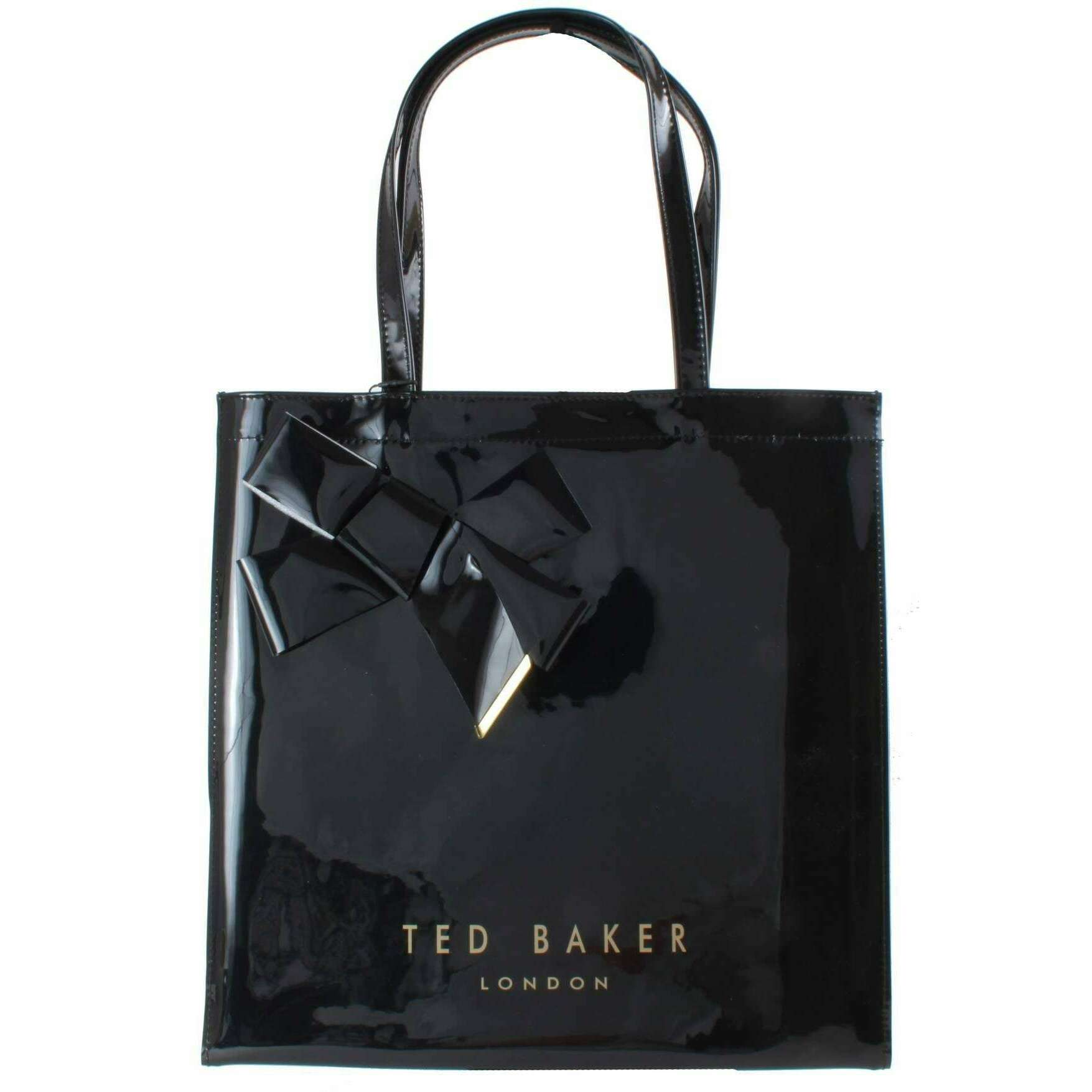 This niconna bow detail large icon bag for women is fashioned by the brand Ted Baker in a black colour and is made from 100% pvc. It measures 37cm(height) x 37cm(width) x 7cm(depth). All the bags come complete with ted baker packaging. The Ted Baker Niconna Bow Detail Large Icon Bag - Black is a simplistic yet stylish piece, perfect if you are looking for something a little different with its gorgeous shiny finish. Inside is a single compartment which will fit your everyday essentials, and the external bow detail gives it modern charm. You cand find branding throughout so make this a companion you do not want to leave the house without.