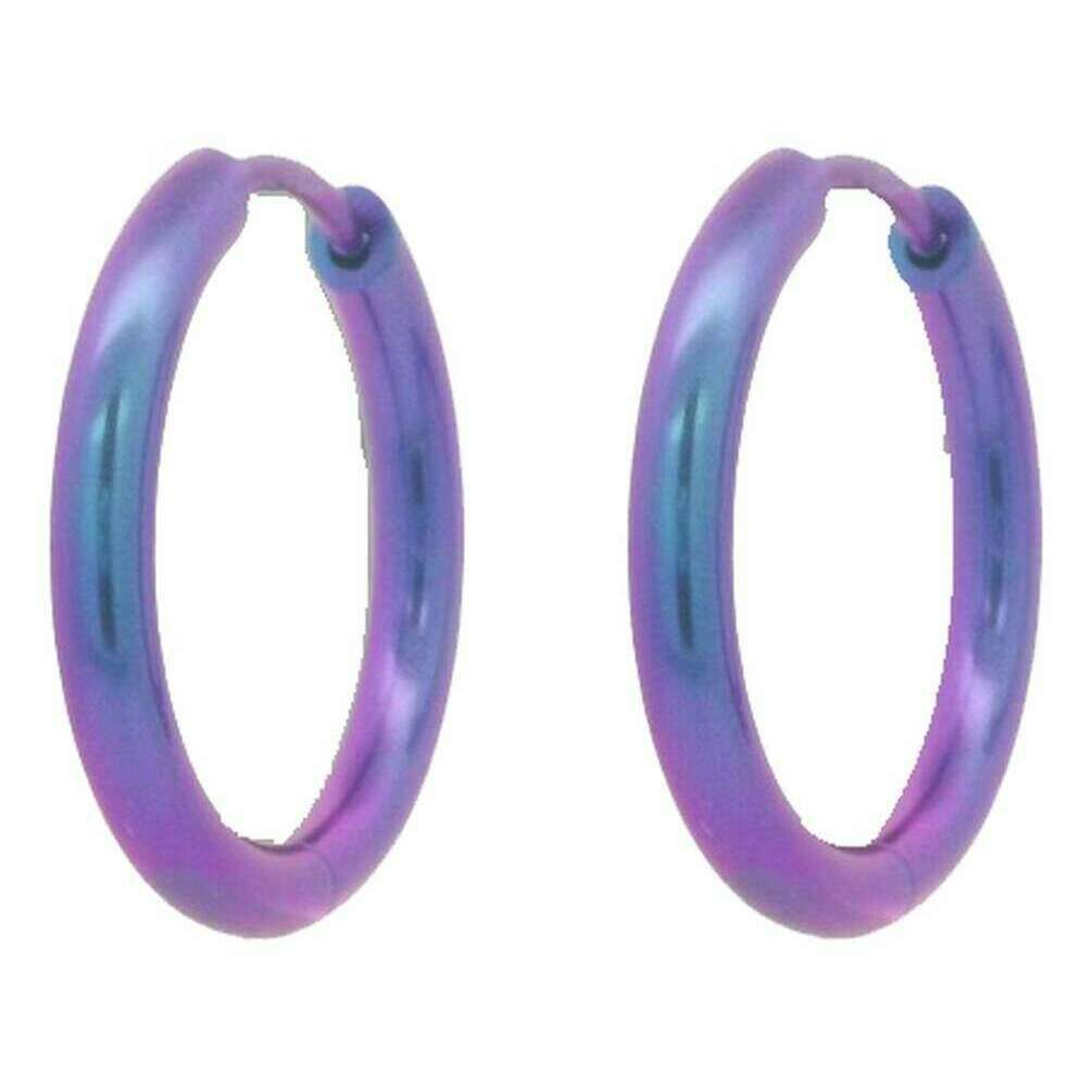 Ti2 Titanium Medium Round Hinged Hoop Earrings - Purple
