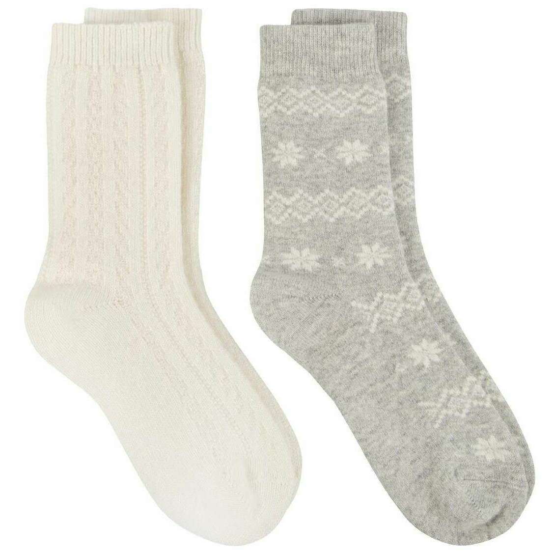 Totes Toasties 2 Pack Cashmere Blend Ankle Socks - Grey/Cream