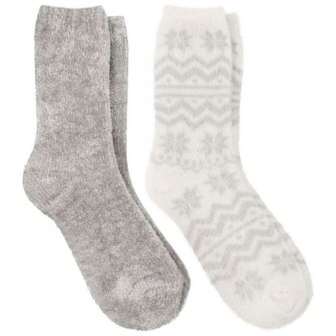 Totes Toasties 2 Pack Fair Isle and Chenille Supersoft Bed Socks - Grey/White