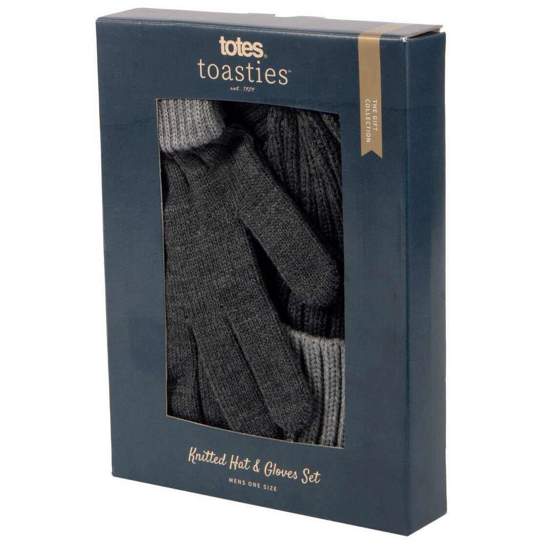Totes Toasties Chunky Knitted Hat and Gloves Gift Set - Charcoal Grey