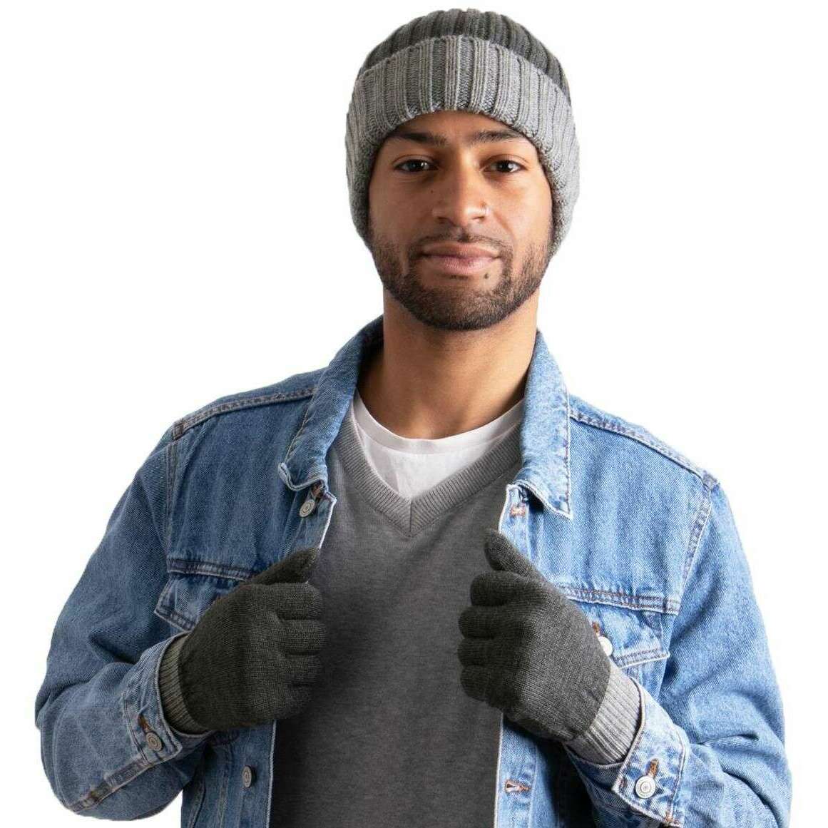 This men's chunky knitted hat and gloves gift set by the brand Totes Toasties is made from 100% acrylic and is showcased in grey. Also the charcoal grey hat is designed in a plain pattern, It is recommended to machine washable at 30 degrees to keep this hat in good condition. All the hats come complete with totes toasties packaging. The Totes Toasties Chunky Knitted Hat and Gloves Gift Set - Charcoal Grey make the perfect set to complete any winter attire whilst having a subtle yet effective look with the ribbed knit design. Ensuring your head, ears and hands are kept toasty is a must-have set that is great for running errands in the cold or whilst attending occasions this winter.