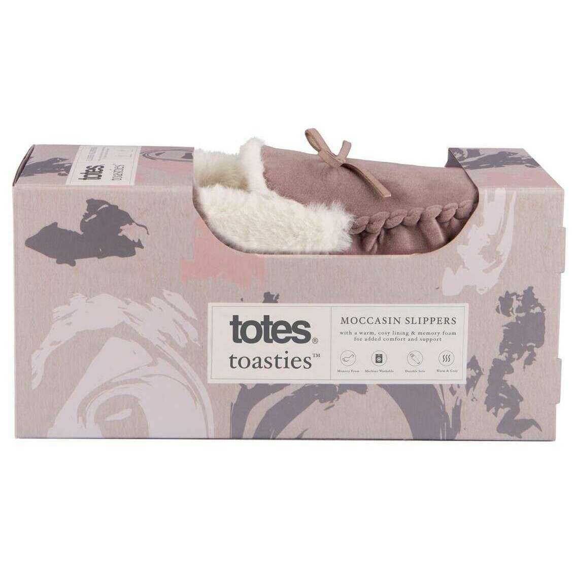 These women's velour moccasin slippers by the brand Totes Toasties are made from 100% polyester and textile tpr outsole and are showcased in pink. Also the mink pink slippers are designed in a plain pattern, All the slippers come complete with totes toasties packaging. The Totes Toasties Velour Moccasin Slippers - Mink Pink features a classic moccasin design that has delicate feminine details with the bow top and the twisted front. Lined with faux fur ensures your feet are kept nice and toasty whilst roaming around the house with added memory foam and a durable sole for comfort and support. These will become your everyday pair that you slide into after a long day of work.