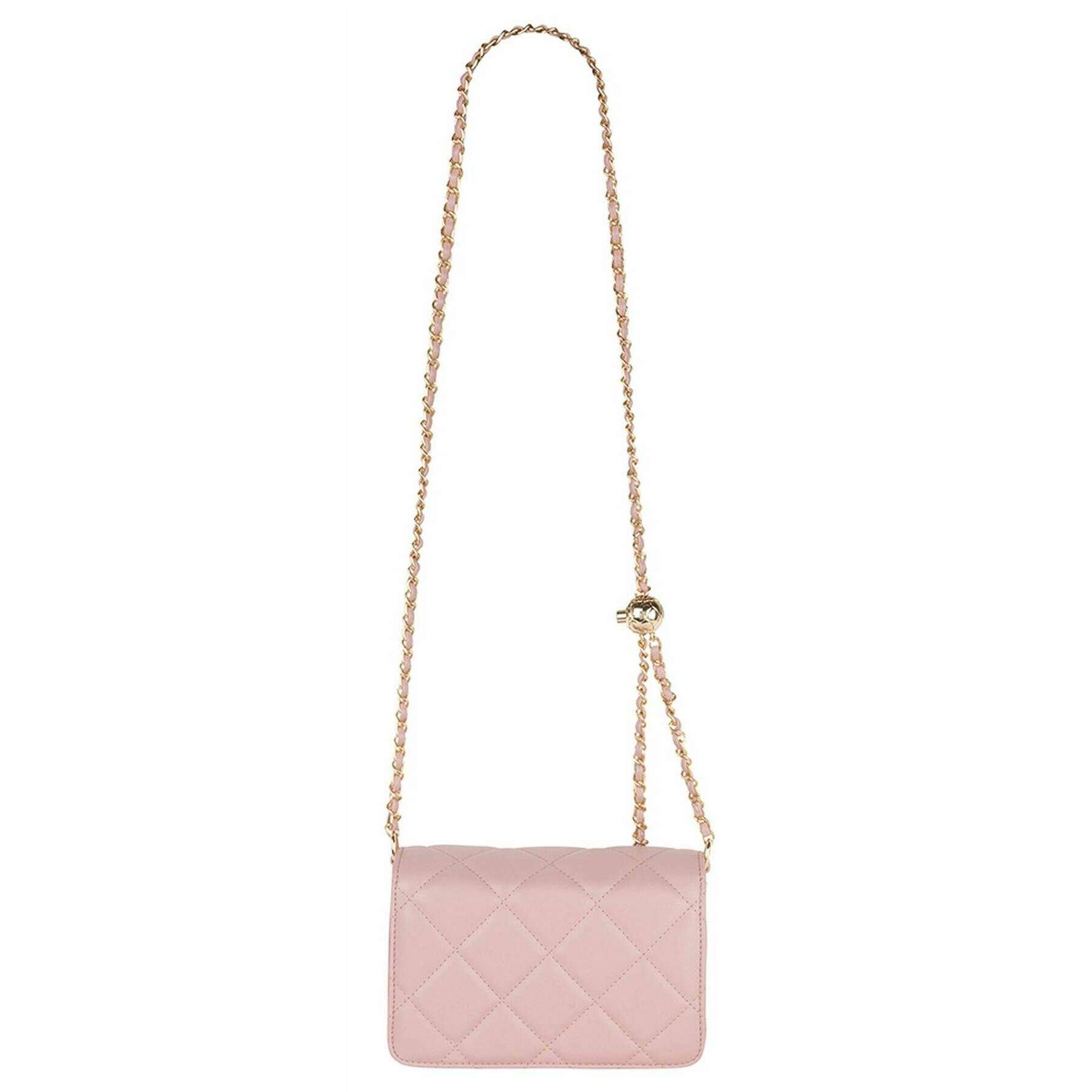 This ocarina flap bag for women is fashioned by the brand Valentino in a pink colour and is made from 100% polyurethane. It measures 13.5cm(height) x 18.5cm(width) x 8cm(depth). All the bags come complete in valentino packaging. The Valentino Ocarina Flap Bag - Cipria Pink exudes elegance, giving you the perfect, stylish companion for all occasions. Its beautiful, quilted texture offers timeless class, and you will want to pick this up whenever you leave the house. The chain strap can be used like a handbag , draped over your forearm of pulled to a longer strap that hangs over your shoulder, both giving you a fine accessory to store you essentials.