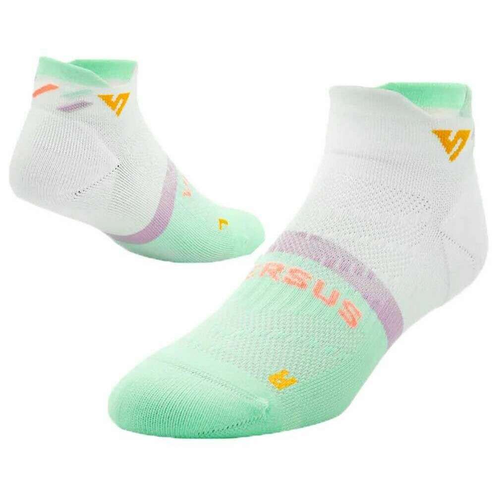 Designer Versus have brought you these unisex 68% nylon, 27% polyester and 5% elastane socks using retro rainbow white tones. Also the retro rainbow white socks are designed in a 3-tone pattern, It is recommended to wash at 30 degrees to keep these socks in good condition. All the socks come complete with versus sock tags. The Versus Running Ankle Socks - Retro Rainbow White features style and high-quality technology, designed to support your arch and ankle throughout casual wear or intense activities like running, hiking and racing. These white running socks are breathable and comfortable with its seamless and short design.