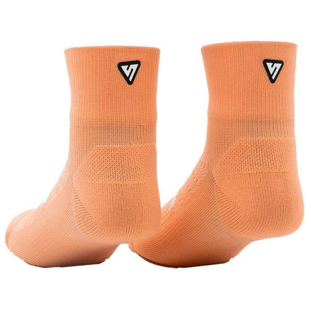 Brought to you by the brand Versus, these peachy orange unisex running quarter socks are made from 68% nylon, 27% polyester and 5% elastane. Also the peachy orange socks are designed in a plain pattern, It is recommended to wash at 30 degrees to keep these socks in good condition. All the socks come complete with versus sock tags. The Versus Running Quarter Socks - Peachy Orange features style and high-quality technology, designed to support your arch and ankle throughout casual wear or intense activities like running, hiking and racing. These orange running socks are breathable and comfortable with its seamless and short design.