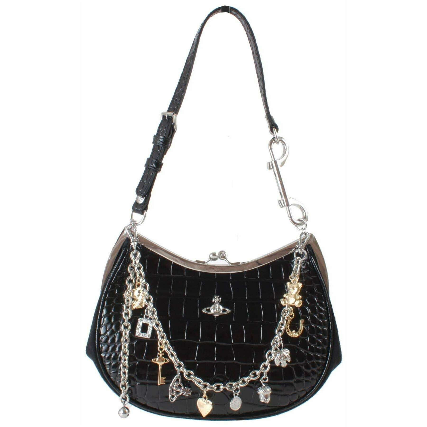 Vivienne Westwood Embossed Croc Charm Frame Purse - Black