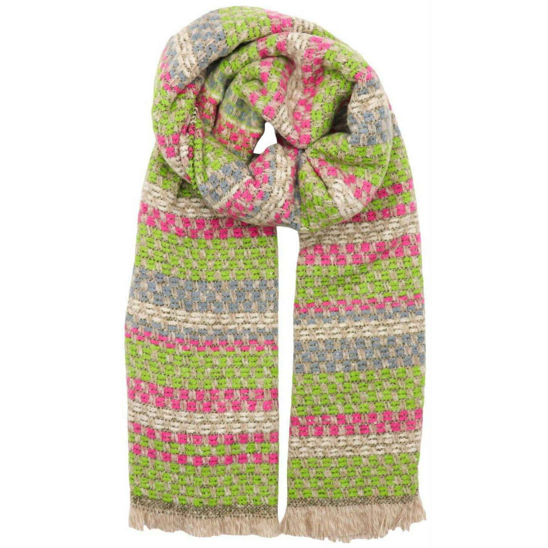 Zelly Abstract Line Winter Weight Print Scarf - Green/Pink