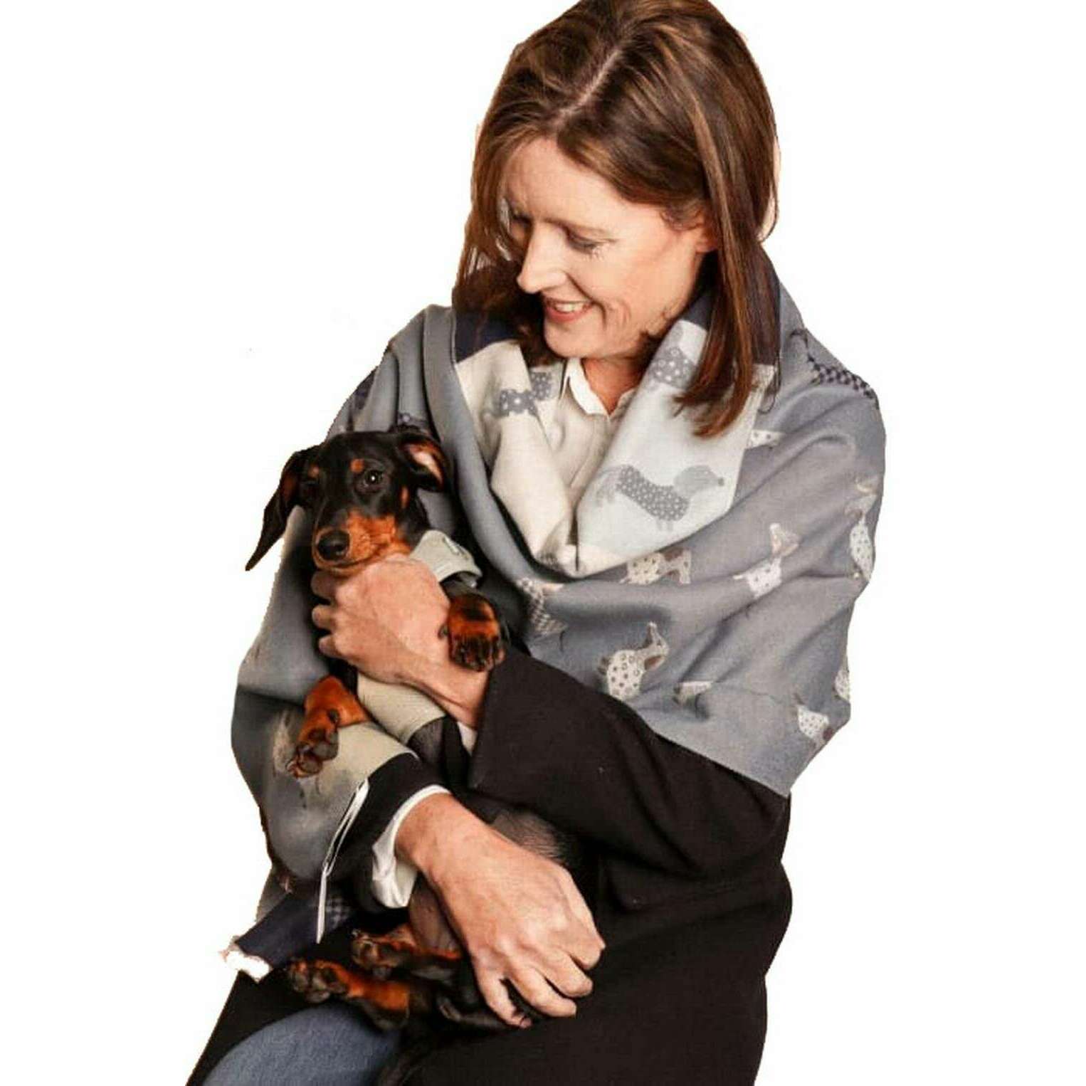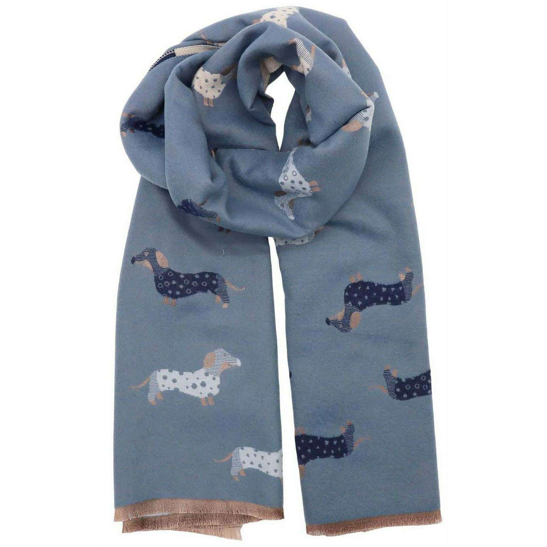 Zelly Dachshund Winter Weight Print Scarf - Blue