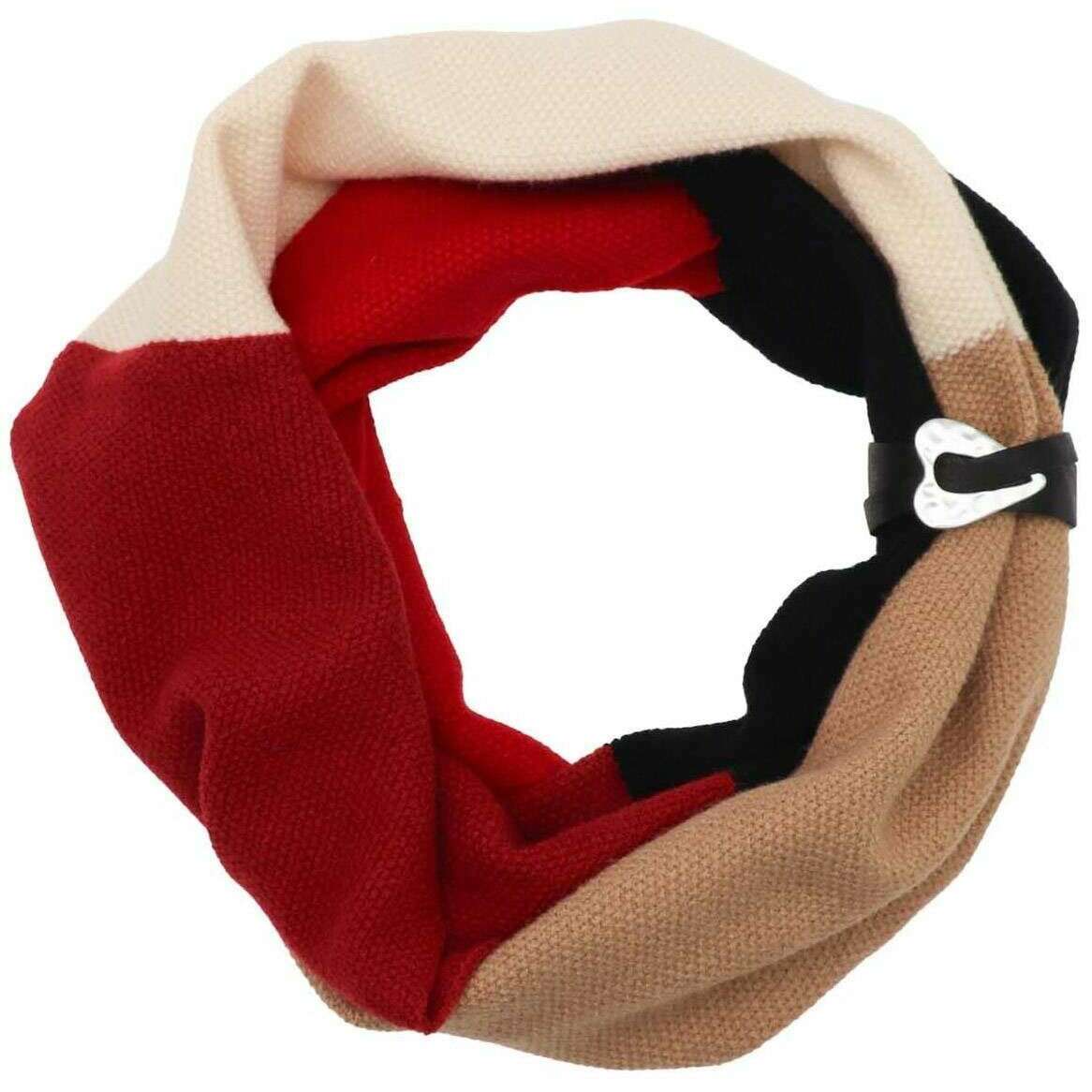 Zelly Faux Leather Detail Loop Snood - Red/Cream/Beige