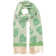 Introducing this women's hearts winter weight scarf by Zelly, it is manufactured from 100% viscose in a green colour. It measures 200cm(height) x 65cm(width). It is recommended to machine wash at 30 degrees to keep this scarf in good condition. All the scarves come complete in zelly packaging. The Zelly Hearts Winter Weight Scarf - Green is a vibrant choice for your winter wardrobe, making you look elegant and stylish while wrapping you up all warm and cosy. The beautiful soft fabric will give you the perfect winter hug when out and about during the cold weather and will brighten up your look, without compromising breathability making it a must have for your collection.