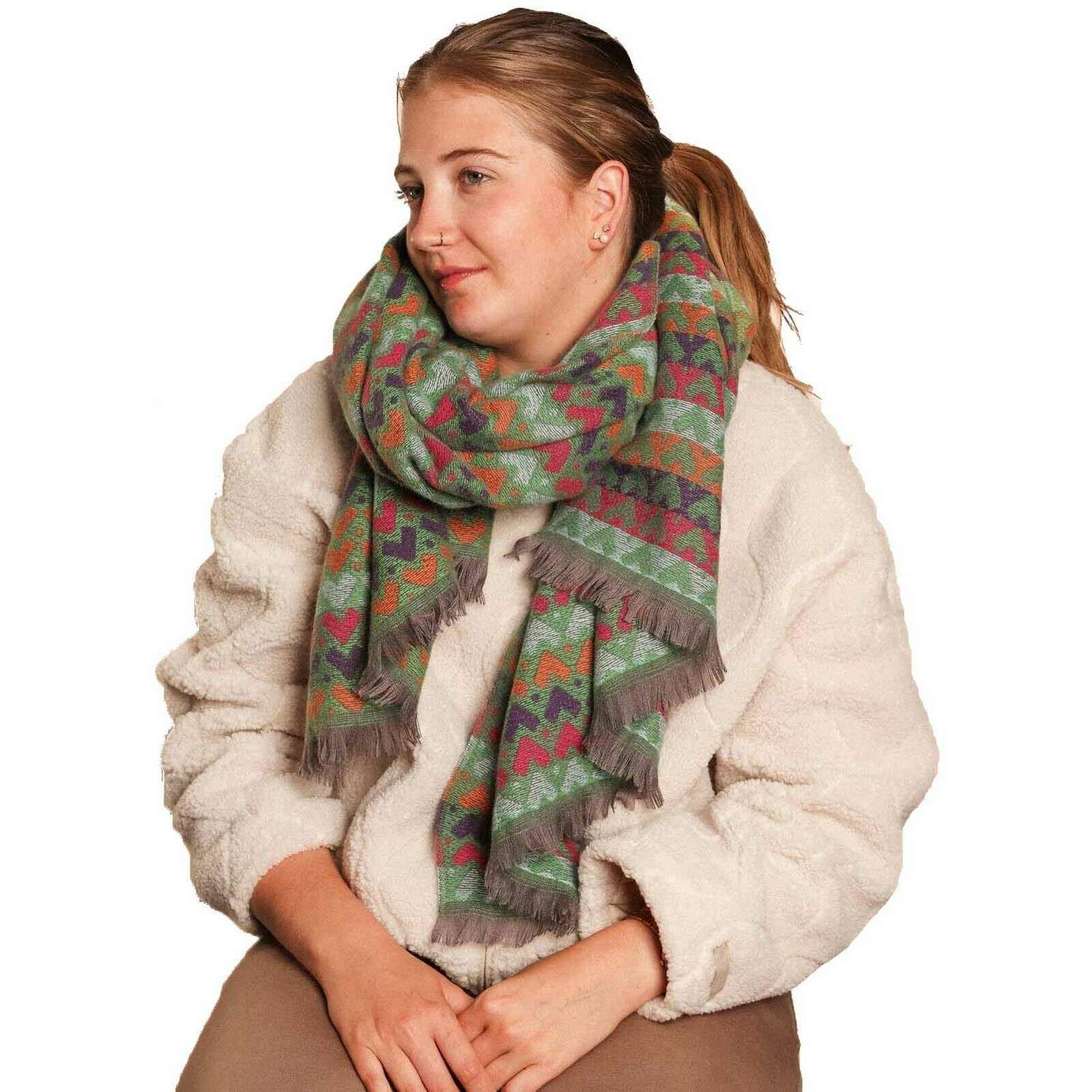 This women's hearts winter weight scarf by the brand Zelly is made from 65% polyester and 35% viscose and is showcased in green. It measures 180cm(height) x 70cm(width). It is recommended to machine wash at 30 degrees to keep this scarf in good condition. All the scarves come complete in zelly packaging. The Zelly Hearts Winter Weight Scarf - Green is a vibrant choice for your winter wardrobe, making you look elegant and stylish while wrapping you up all warm and cosy. The beautiful soft fabric will give you the perfect winter hug when out and about during the cold weather and will brighten up your look, without compromising breathability making it a must have for your collection.