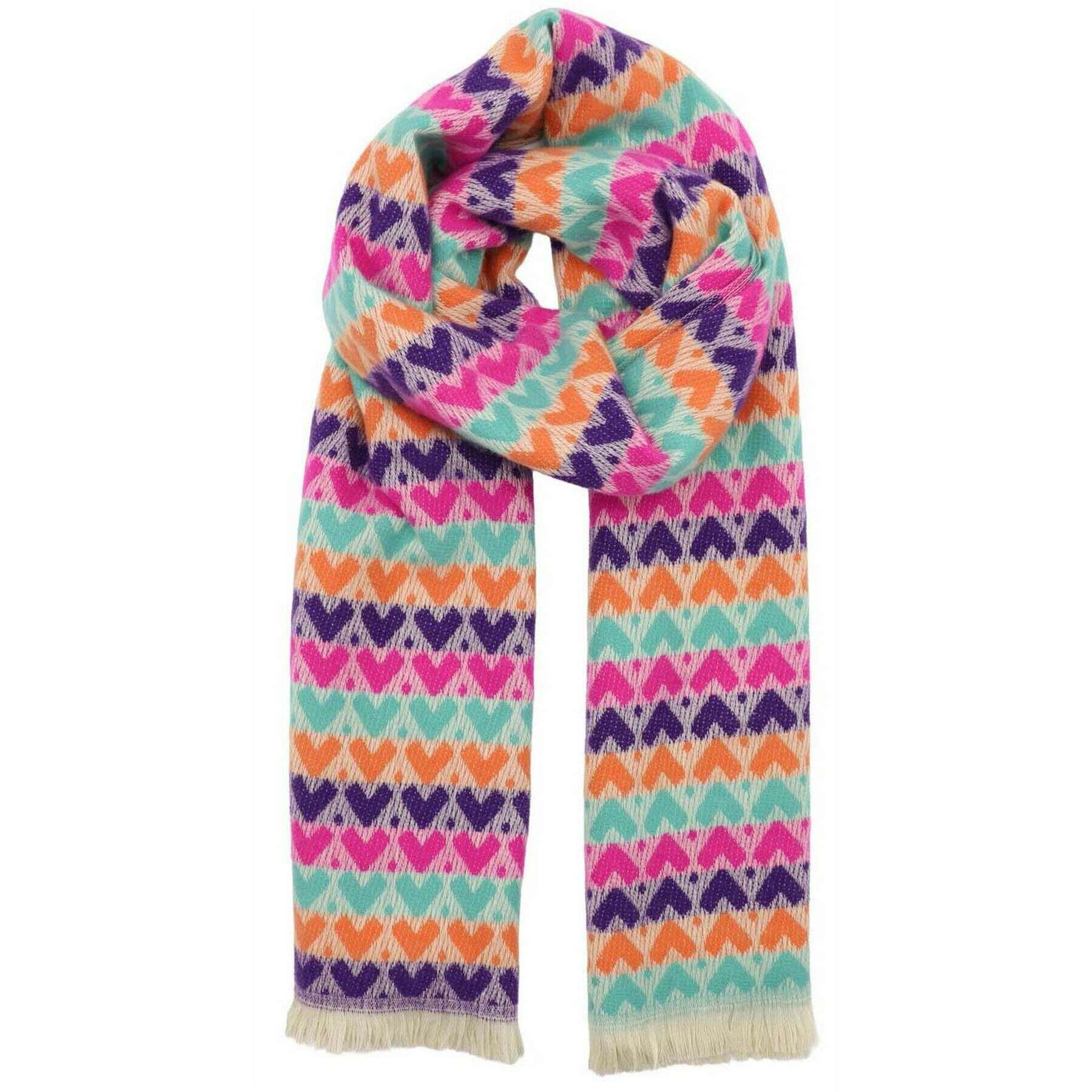 Zelly Hearts Winter Weight Scarf - Purple/Orange/Pink